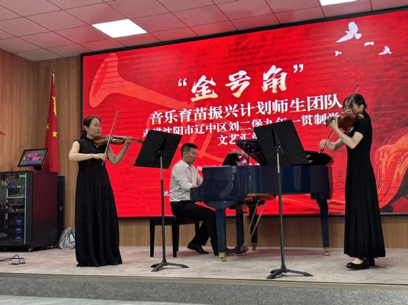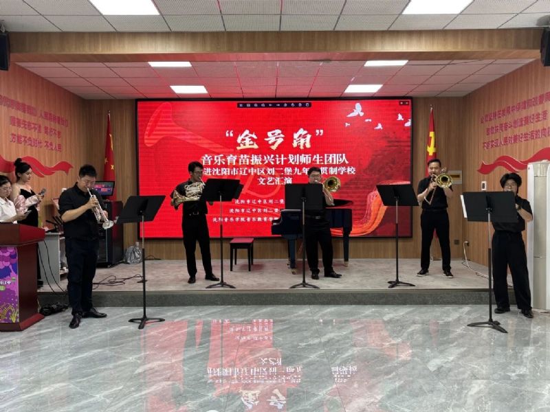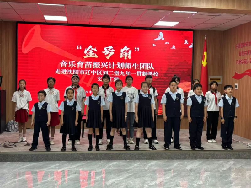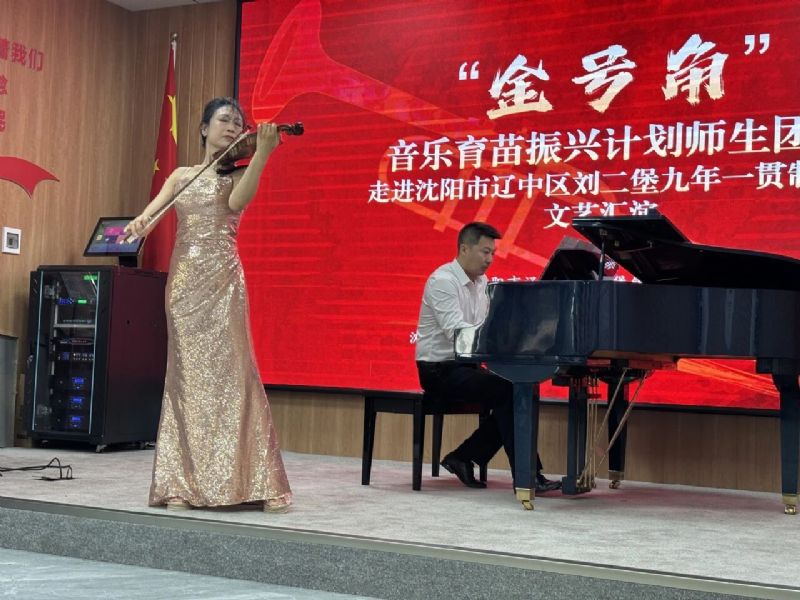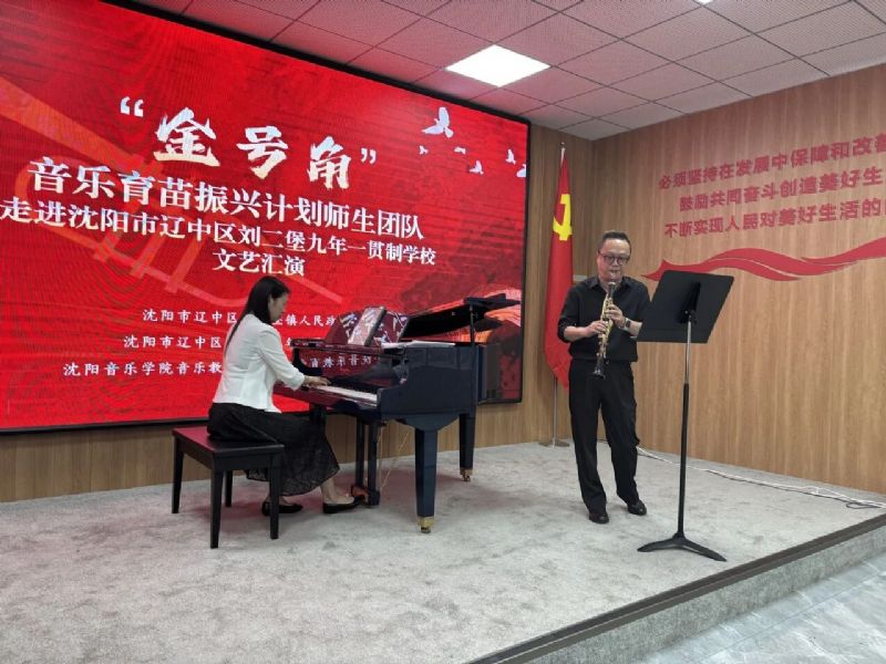 6月11日,音乐教育学院“金号角·音乐育苗振兴计划”师生团队一行30余人走进沈阳市辽中区刘二堡镇九年一贯制学校,以“艺术赋能成长,党建引领方向”为主线,开展“金号角·音乐育苗振兴计划”系列活动。辽中区刘二堡镇党委副书记、镇长郭致彤,辽中区招生考试办公室主任张志岩,刘二堡九年一贯制学校党支部书记、校长朱大可,音乐教育学院管弦器乐教育系主任韩庶,党支部书记郭飞,副主任常黎芳等参加了本次活动。