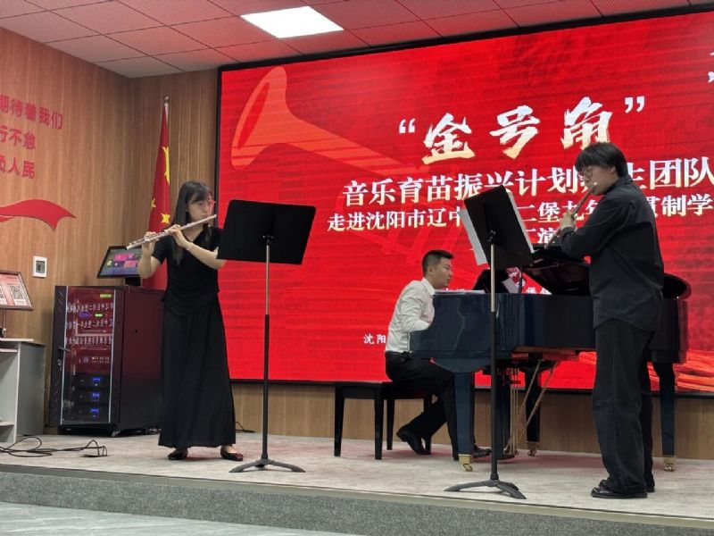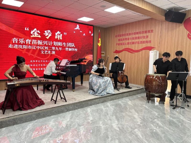 6月11日,音乐教育学院“金号角·音乐育苗振兴计划”师生团队一行30余人走进沈阳市辽中区刘二堡镇九年一贯制学校,以“艺术赋能成长,党建引领方向”为主线,开展“金号角·音乐育苗振兴计划”系列活动。辽中区刘二堡镇党委副书记、镇长郭致彤,辽中区招生考试办公室主任张志岩,刘二堡九年一贯制学校党支部书记、校长朱大可,音乐教育学院管弦器乐教育系主任韩庶,党支部书记郭飞,副主任常黎芳等参加了本次活动。