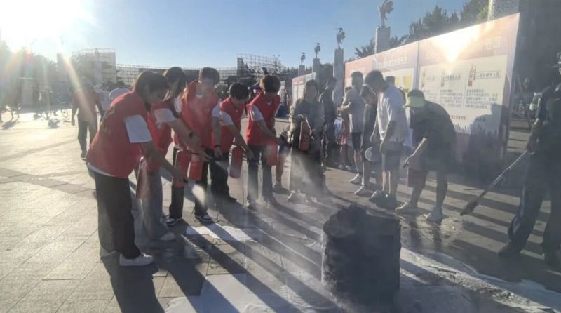 7月30日,实践团成员在沈阳市于洪区丁香湖公园中心参加人人关注消防 人人参与消防——“沈水护航 平安夏夜”消防科普嘉年华活动。活动现场,同学们参与了丰富的消防知识展示和互动体验环节,如现场体验在室外搭建的“模拟火场逃生”装置、亲身感受灭火器与消防栓的使用、学习基本心肺复苏技巧等,在现场演唱了消防志愿主题歌曲《愿》,将活动气氛推向高潮。同学们用深情的歌声传递着对消防安全的关注和对生命的热爱,活动现场热闹非凡,大家在欢乐中收获了消防安全知识。