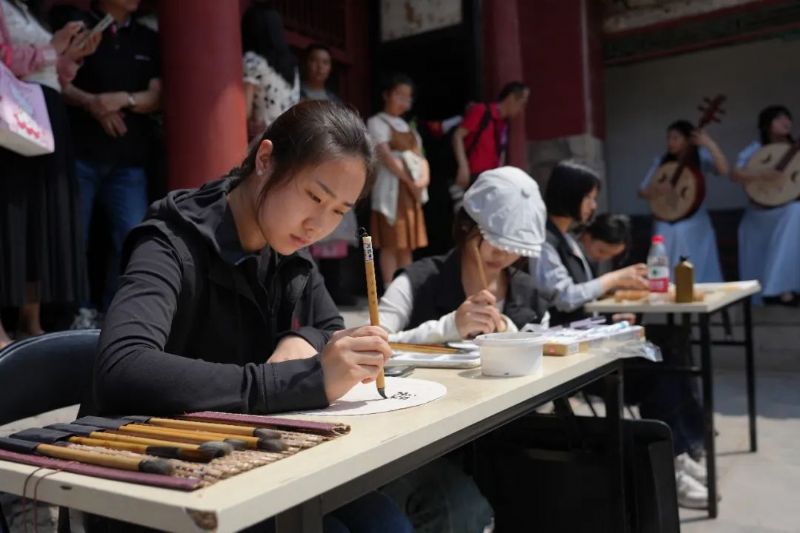 在悠扬的乐曲声中,鲁美中国画学院的同学们现场挥毫泼墨,即兴展示国画艺术的魅力。弦歌雅韵与笔墨丹青的艺术合集,令现场游客赞叹不已。