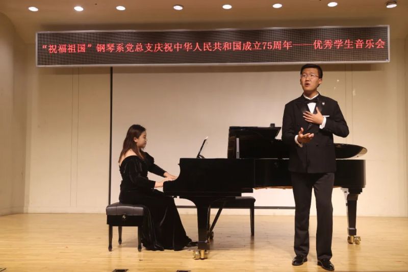 为深入学习贯彻习近平总书记关于教育和青年工作的重要论述,庆祝中华人民共和国成立75周年,11月13日,钢琴系党总支举办了“祝福祖国——庆祝中华人民共和国成立75周年优秀学生音乐会”,为祖国送上最诚挚的祝福。2023级研究生刘奕含、于庆凯主持了本场音乐会。