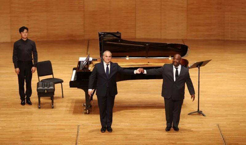 作为当代最受瞩目的罗西尼男高音之一,劳伦斯·布朗利以其无与伦比的音色控制、高超的演唱技术和深具感染力的艺术表现享誉全球。在此次中国首秀中,劳伦斯·布朗利特别甄选了多部经典作品倾情呈现。音乐会在《世袭避难所》震撼磅礴的旋律中拉开序幕,随后他以炉火纯青的声乐演唱技巧相继献唱了《偷洒一滴泪》《不久我将入葬》《舞曲》《如此纯洁的天使》《整日整夜》等经典曲目和传世名作,为现场观众带来了一场极尽华美的听觉盛宴。音乐会上,国际顶级歌剧艺术指导、柯蒂斯音乐学院声乐与歌剧系主任米洛什·雷皮茨基(Miloš Repický)担任艺术指导,与劳伦斯·布朗利合作演出。他出神入化的钢琴演奏与歌唱家精湛的演唱默契交融、交相辉映,共同凝聚为极具感染力的舞台呈现。音乐会在《啊!我的朋友们,多么欢庆的日子》中达到高潮。劳伦斯·布朗利凭借对连续九个High C的完美演绎点燃现场,再次展现出非凡的声乐造诣。最后,布朗利还特别献唱中文歌曲《在水一方》,他以精准的中文发音和深情诠释传递出对中国文化的真诚尊重与致敬,也为整场音乐会书写了动人而圆满的终章。劳伦斯·布朗利的演唱不仅彰显出声乐艺术的至高水准,更进一步拓展了“首映歌剧”大赛的国际影响力,使其成为中国观众与国际顶尖艺术深度对话的纽带。