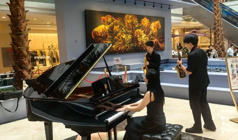 钢琴独奏德彪西的《欢乐岛》让游客们弥漫在幻想式的愉快氛围中,仿佛带领听众们踏上了一场梦幻般的旅程,让人们在音乐的海洋中自由翱翔。 钢琴和萨克斯协奏曲《月亮代表我的心》充分表达了歌曲中深沉而真挚的情感,钢琴以其丰富的音色和表现力,细腻地描绘出歌曲中的柔情与思念;而萨克斯则以其独特的音色和演奏技巧,为整首曲子增添了浓厚的情感色彩。