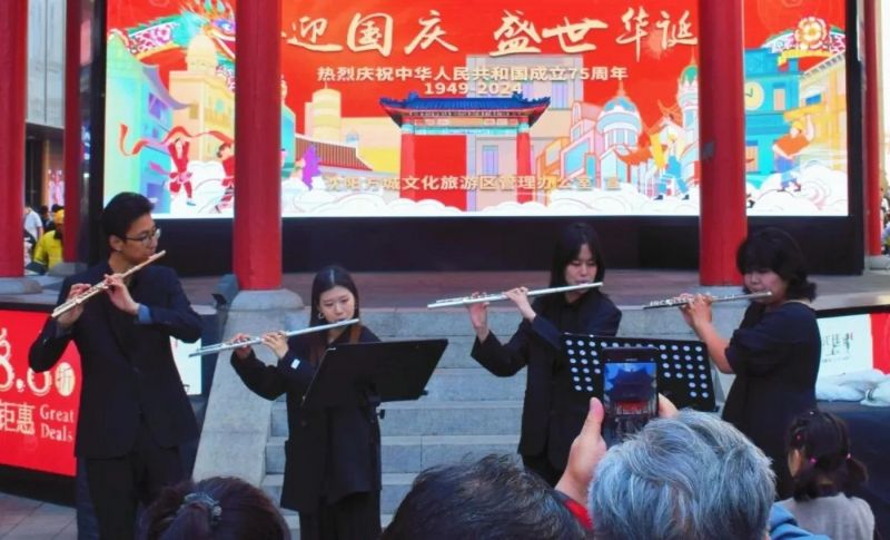 为庆祝中华人民共和国成立75周年,推动高品质文体旅融合发展示范地建设,10月1日,必威游戏中心 “红色文艺轻骑兵”第60小分队(音乐教育学院)来到沈阳方城,用优美的歌声与动听的旋律,以文艺形式祝福伟大祖国,深情表达对祖国的无限热爱和对新时代的由衷赞美。