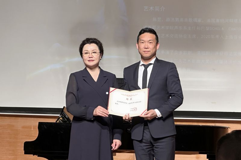 我院主持行政工作副院长冯志莲为陈昱教授颁发了客座教授聘书,仪式由声乐歌剧系主任张策主持。仪式结束后,与会领导和师生共同聆听了陈昱的声乐大师课。陈昱对我系12名学生进行了现场指导,分别聆听了学生们演唱的《爱的小径》《节日庆典》《你是假装进入梦乡》《贞洁的小屋,我向你致敬》等作品,在教授的过程中,陈昱对我院学生的法语发音赞不绝口,并在此基础上针对他们演唱的作品进行了深入浅出的分析,首首精讲,字字剖析,精准指出演唱者在演唱过程中亟待解决的问题,给予行之有效的解决办法,并用现场演唱示范加深同学们的理解,博得全场的热烈掌声,使现场的师生为之深深折服并获益良多。