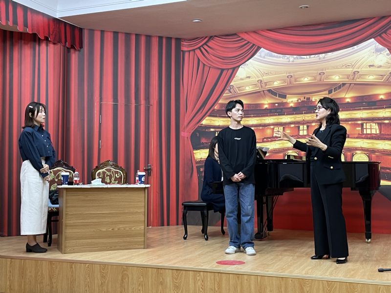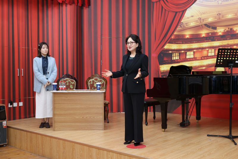 大师课中,朴教授用生动的语言和形象的示范,带领学生们走进艺术的殿堂。她详细讲解了音乐演唱时需要注意的技术技巧,如发声的位置和气息的运用等,强调了探索歌曲的背景、角色的内涵和演绎等,引导学生要充分发掘艺术作品的表现力,将歌曲的“灵魂”表现得淋漓尽致。