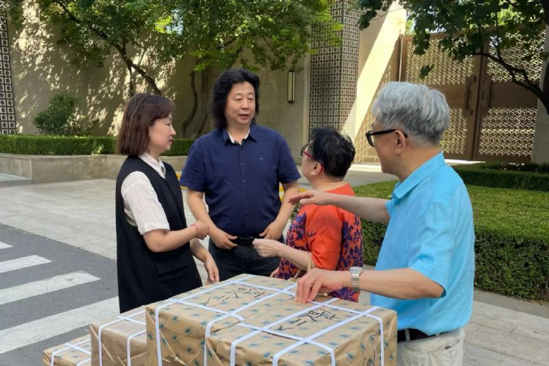 霍立教授在从教几十年中,对中国声乐作品进行精心遴选和编排,对适合声乐演唱教学的作品进行分类整理,认真严格地进行校对排版,形成了堪称声乐“曲库”的这套作品集。该作品1-17集均已出版,已包括了近700首歌曲,为声乐教学工作,学科教材规划和建设等作出了巨大贡献。在捐赠活动中,霍立教授将书籍分册包装,摆放整齐。她向大家详细地介绍了书籍的内容,讲述了编写意义和对声乐教育事业未来的展望,充分体现了一位教育家德艺双馨的典范形象,她虽然已不在一线教学岗位,但仍心系中国声乐教育事业的发展。
