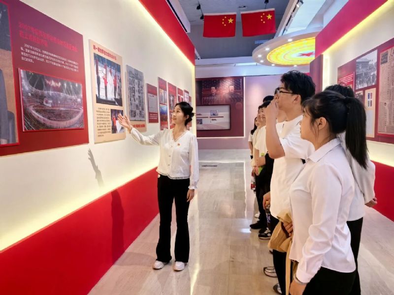 师生们首先参观了“读懂新中国”主题展,展览共分为社会主义革命和建设时期、改革开放和社会主义现代化建设新时期、中国特色社会主义新时代三大篇章,全面、客观地展现中国共产党领导中国人民取得的伟大成就,重现这段波澜壮阔的奋斗历程。大家在展览现场仔细观看每一个板块,驻足交流,近距离感受红色文化历史,感悟红色文化精神。