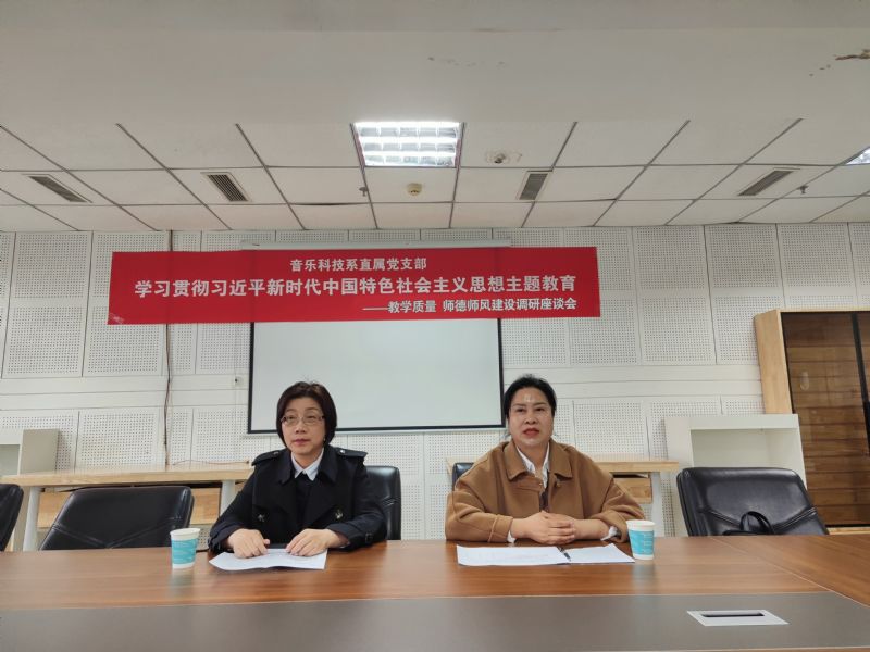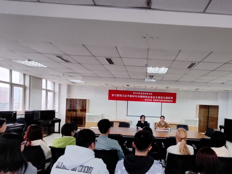 4月25日,在长青校区第二教学楼1204,音乐科技系直属党支部开展了学习贯彻习近平新时代中国特色社会主义思想主题教育调研座谈会。系主任邵申弘、直属党支部副书记郎彩飞,以及2020级、2021级学生干部、入党积极分子、团员代表28人参加了调研座谈。