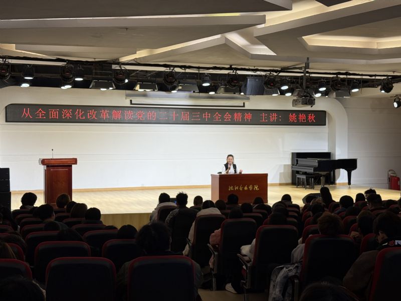 讲座伊始,姚艳秋首先回顾了党的二十届三中全会的历史背景和重要意义。她指出,这次会议是在我国全面建设社会主义现代化国家新征程上召开的一次十分重要的会议,为新时代全面深化改革指明了方向。随后,她围绕全面深化改革的总体要求、主要任务和重大举措等方面进行了深入浅出的讲解,并结合音乐科技系的实际情况,阐述了如何在教育教学、科研创新、人才培养等方面贯彻落实全会精神。
