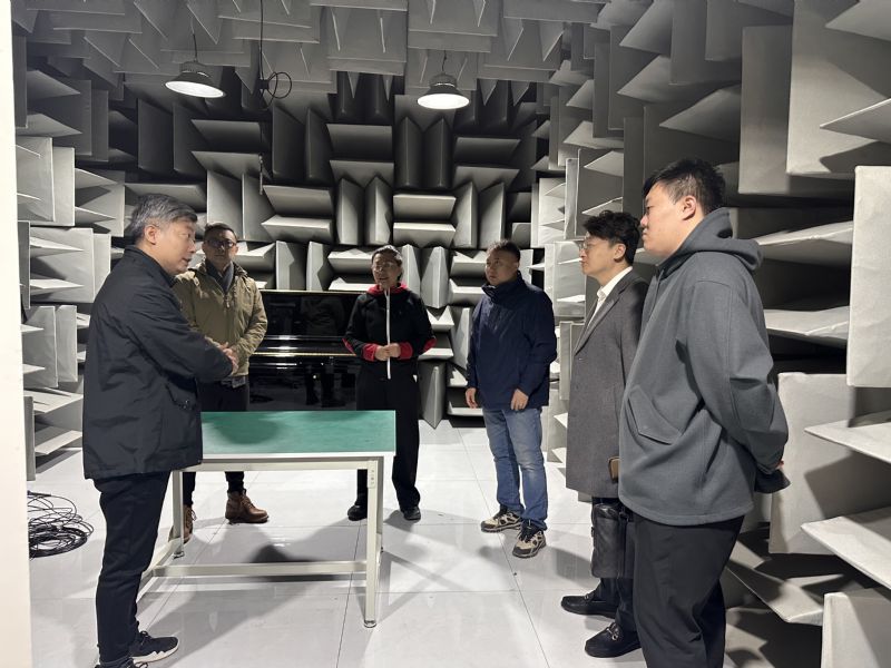 会后,双方共同参观了音乐声学实验室。音乐科技系实验室与基础课教研室主任汪洋现场演示了半消声室、脑电分析室等设施的应用场景,并展示了在研项目进展。高岩团队对实验室的前沿研究方向表示高度认可,并提出“将紫光智算技术融入声学建模”的可行性方案。