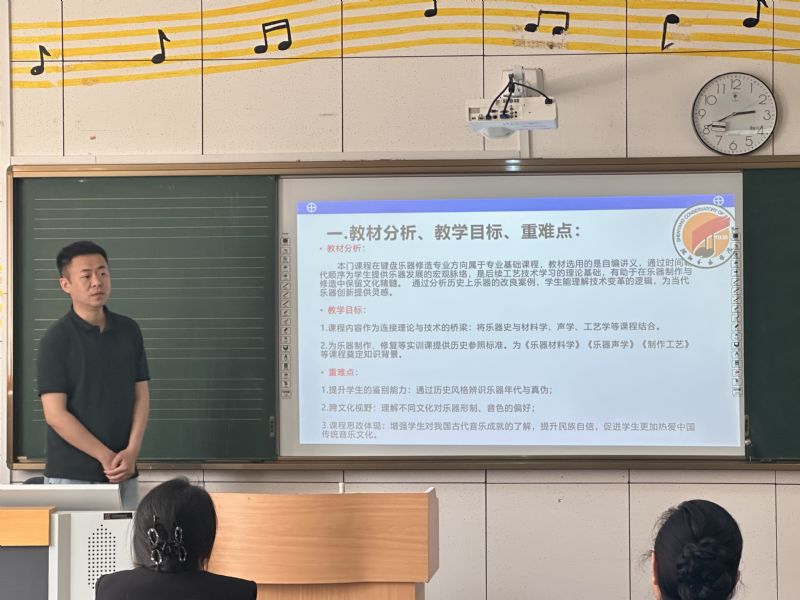 为深入贯彻落实习近平总书记关于教育的重要论述和全国高校思想政治工作会议精神,全面推进我系课程思政建设,提高教师课程思政教学能力。2025年4月29日,音乐科技系课程思政示范课大比武在长青校区第二教学楼308举行,聘请来自东北大学、沈阳理工大学、鲁迅美术学院及马克思主义学院的专家担任评委。本次活动旨在通过教学竞赛的形式,推动教师积极探索课程思政的有效路径和方法,提升课程思政教学质量,实现知识传授与价值引领的有机统一。我系专任教师全员参赛,充分展示了我系在课程思政教学改革方面的成果和教师们的教学风采。