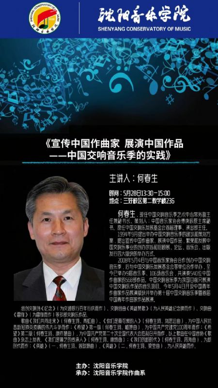 讲座预告 | 何春生《宣传中国作曲家 展演中国作品——中国交响音乐季的实践》