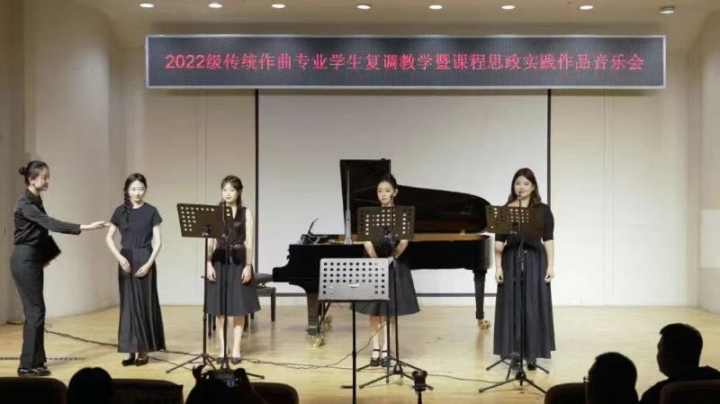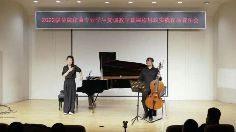在音乐会中,特邀作曲系传统作曲专业、视唱练耳专业、指挥专业、管弦系大提琴专业、声乐歌剧系、民族声乐系及钢琴系多位学生助演,将2022级传统作曲专业学生由民歌旋律创编的复调小曲生动呈现。本场音乐会传统音调与现代复调思维交织,让观众感受到传统与创新的碰撞,见证专业教育与思政育人的同频共振!