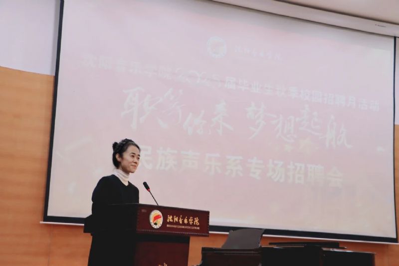 辽宁人民艺术剧院附属艺术学校、辽宁省合唱协会、麦客蜂(沈阳)传媒科技有限公司、沈阳六艺文化传媒有限公司、沈阳希丁合唱文化传播有限公司、沈阳市于洪区蒙玛教育培训、盘锦丰艺辽河口文化艺术团有限公司、远哲(沈阳)教育咨询有限公司、沈阳艺家文化传媒有限公司、沈阳芮兰文化传媒有限公司共10家用人单位代表分别介绍了各单位的基本情况和岗位需求,他们纷纷表示,对民族声乐系的人才培养质量给予高度评价,并期待与民族声乐系进一步加强合作,共同搭建校企合作新平台,为毕业生提供更多元化的就业机会和更广阔的发展空间。