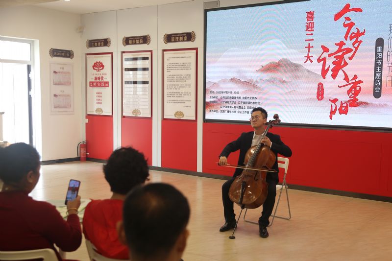 9月29日上午,沈阳市皇姑区三台子街道牡丹社区内欢声笑语,琴声悠扬,由沈阳市委宣传部、沈阳市文明办主办,沈阳广播电视台承办,辽宁省散文学会、辽宁省朗诵协会、必威游戏中心协办的深入皇姑区三台子街道牡丹社区走访慰问活动正在这里举行。本次活动是深入学习贯彻习近平总书记在辽宁考察时的重要讲话精神,特别是关于“加强社区服务、提升服务功能”的重要论述,围绕“喜迎二十大 今岁话重阳”主题,以重阳、国庆两大传统节日为契机,组织开展的走进社区文化服务活动。学院艺术实践教学中心主任王晓玲、管弦系党总支书记陈璐及管弦系教师共同参与了此次活动。