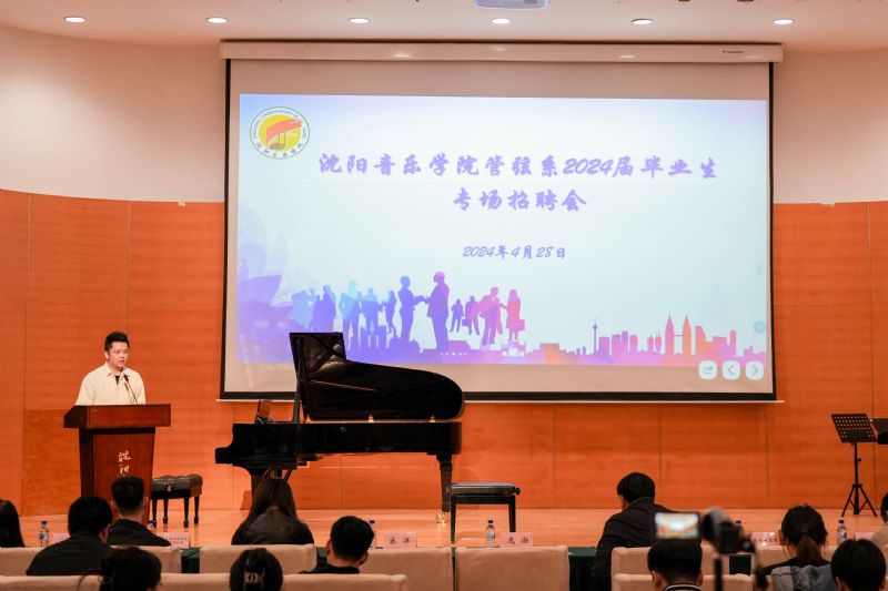 管弦系行政负责人程岩向用人单位介绍了管弦系历史沿革、学科建设、师资队伍、人才培养以及近年来取得的艺术实践成果等基本情况。他希望通过招聘会,使双方增进了解与沟通,推进供需对接,为毕业生搭建高质量就业平台,为各企事业单位注入新鲜血液,共同为辽宁全面、全方位振兴乃至国家艺术事业的繁荣发展发挥责任与担当!
