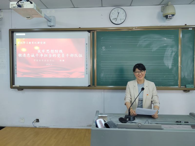 根据中共中央办公厅《关于在全党开展党纪学习教育的通知》精神,按照学院《关于开展党纪学习教育的实施方案》的部署要求,5月16日,管弦系党总支书记陈璐以《筑牢思想防线 锻造忠诚干净担当的党员干部队伍》为题,讲授党纪学习教育纪律党课。全体处级党员领导干部、党支部书记、党员师生参会学习。