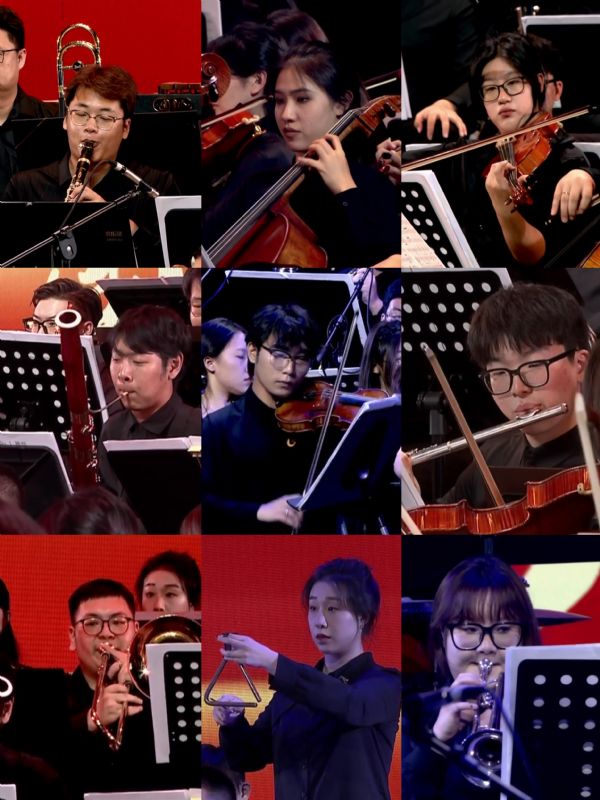 学院在接到演出任务后,高度重视、周密部署。北方交响乐团共98名师生不辞辛苦、日夜奋战,经历了近十天高强度的紧张排练,克服了排练场地局限、曲目数量多、演奏难度大等重重挑战。在幕后,由管弦系和艺术实践中心组成的排练统筹工作团队严谨细致周密地做好服务协调和保障,确保整场音乐会高质量呈现。在当晚的演出中,北方交响乐团将交响诗《祖国》的波澜壮阔、雄壮豪迈演绎得淋漓尽致,用精湛的技艺、纯熟的表演奏响了“新辽沈战役”的冲锋乐章。在现场观众们如潮的热情掌声中,乐团两次返场演出,最终在《歌唱祖国》的嘹亮歌声中结束了大型交响诗《祖国》的首演。