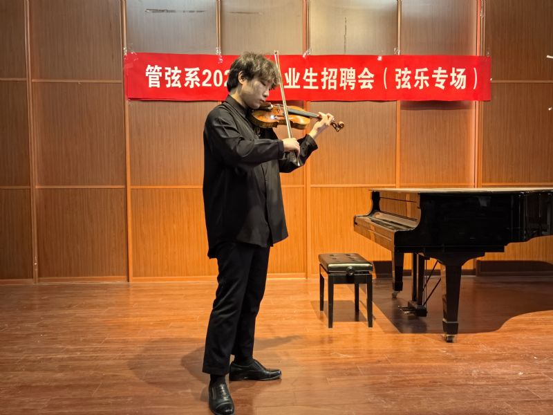 在专场招聘会上,悠扬的小提琴声如泣如诉,仿佛在诉说着毕业生们对音乐梦想的执着追求;雄浑的大提琴音深沉有力,恰似他们在艺术之路上的深厚沉淀;毕业生们用两场精彩绝伦的专业展示,为自己的求职之路奏响了独特的旋律。
