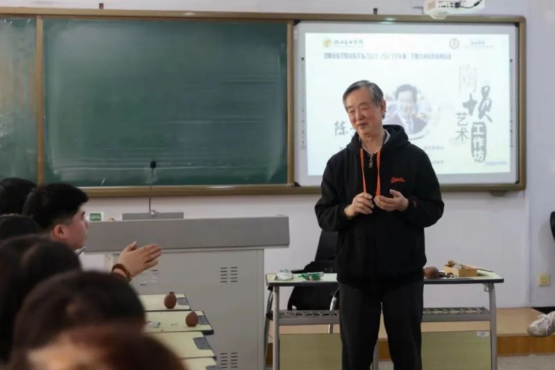 随之,陈老师指导在座师生进行陶埙制作的实践。在寓教于乐的气氛中,泥土的形状和韵律愈发清晰,我系师生的初次制埙成果也依次展现。活动最后,陈老师寄语同学们能传承埙的制作,并建议大家通过不断思考、做笔记积累做埙的经验。
