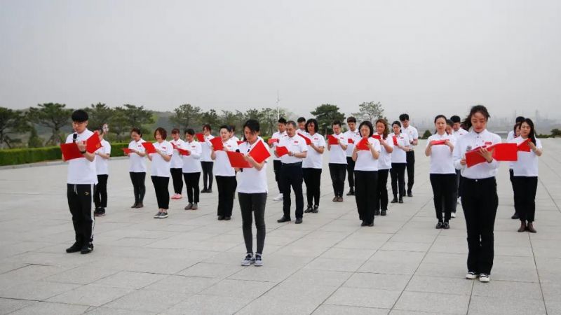 在庄严的辽沈战役革命烈士纪念塔前,全体师生驻足瞻仰解放军战士雕塑,向辽沈战役革命先烈默哀。在党总支书记耿岩的带领下,面向党旗重温入党誓词。随后,全体师生来到辽沈战役中牺牲的党员梁士英烈士墓前,聆听梁士英烈士孙女梁丹丹讲述爷爷舍身炸地堡的英雄事迹。